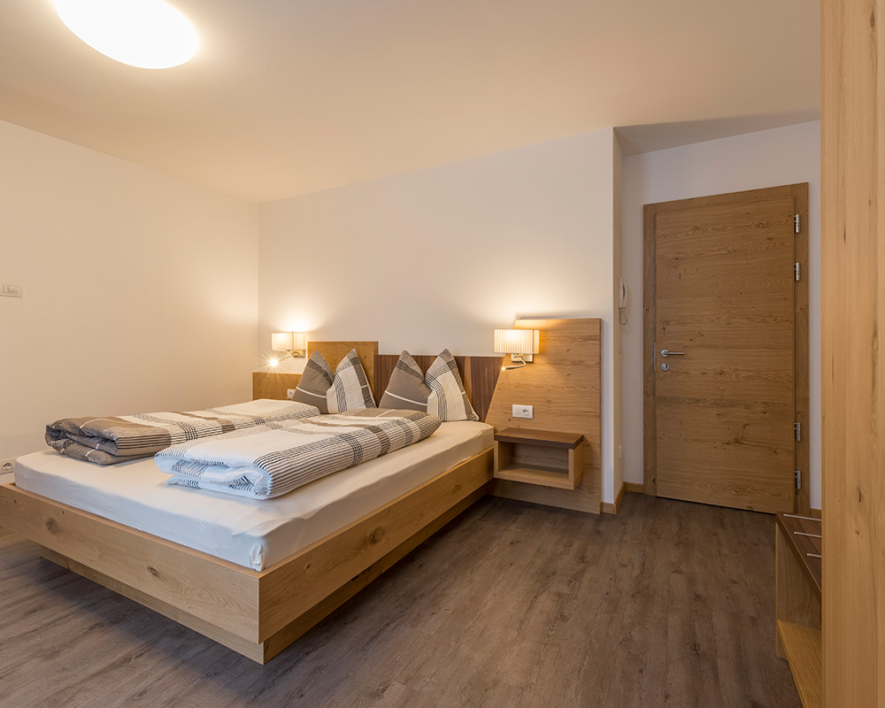 Le nostre camere a Racines sono nuove e ampie (17-19 m²). Esse comprendono un televisore, una cassetta di sicurezza, un comodo divano-letto estraibile e un bagno con doccia, WC e bidet. È inoltre disponibile una connessione Internet tramite WLAN. Le nostre comode stanze possono ospitare fino a quattro persone.